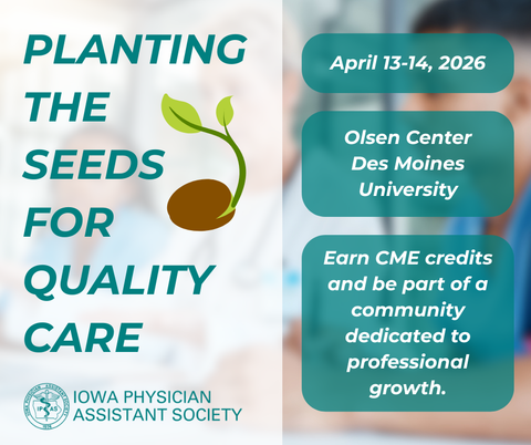 The 2026 IPAS Spring CME will be held at the Des Moines University - Olsen Center in Des Moines, IA, April 13-14, 2026. The schedule is built to provide in-person CME credit and will cover the top topics impacting medical providers today, as suggested by previous attendees at our events and the guidance of our 100% PA Planning Committee!