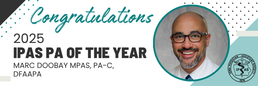 Des Moines, IA – The Iowa Physician Assistant Society (IPAS) is proud to announce Marc Doobay MPAS,PA-C, DFAAPA as the prestigious PA of the Year award recipient.